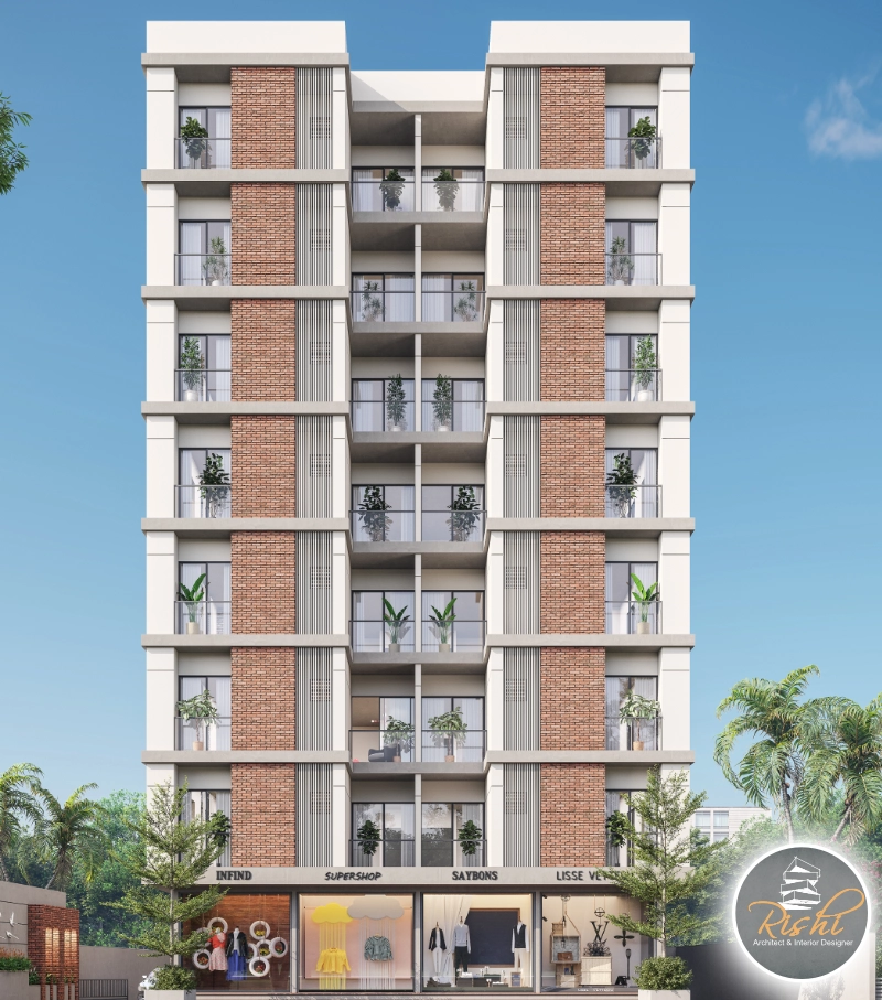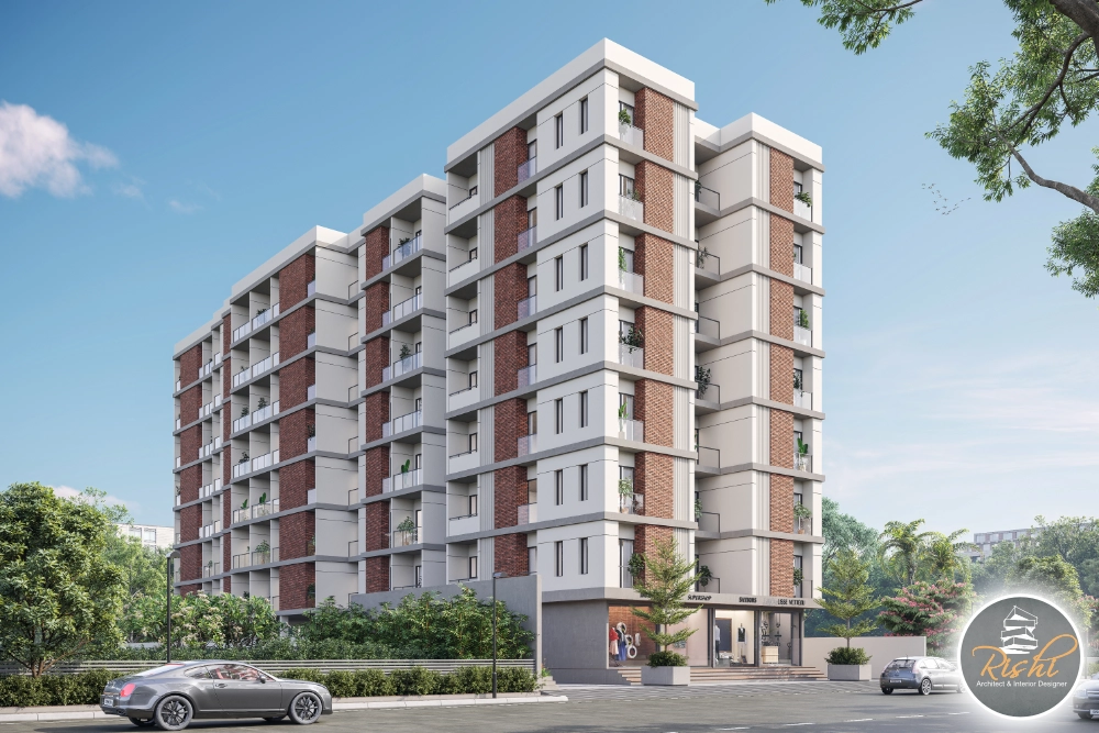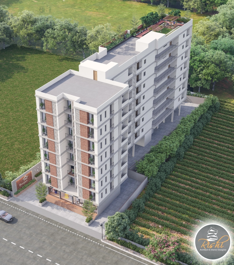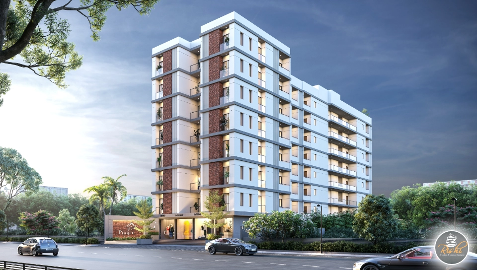 Offering the timeless allure of home and the enduring legacy with elegant and unvarying elevation design; Akshar Poojan offers spacious flats with spectacular views. A project with road-facing shops and spacious 2-bhk flats, with a floor plate consisting of 3 units on a floor for Tower-A and 2 units on a floor for Tower-B rising to 7 floors with parking on Basement and Ground Floor. The Ground Floor consists of road facing shops and allotted parking.
