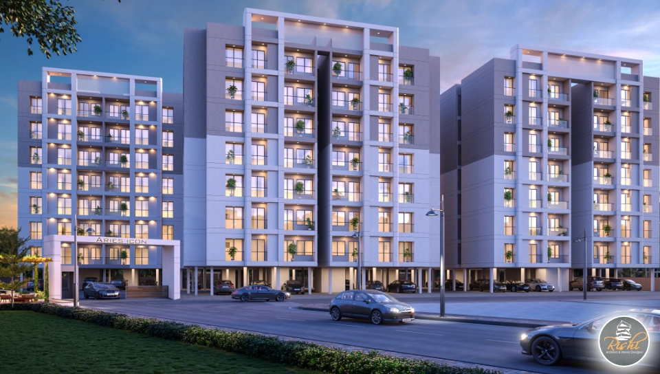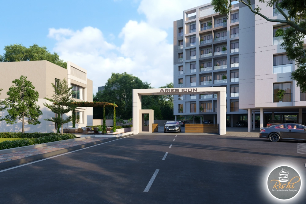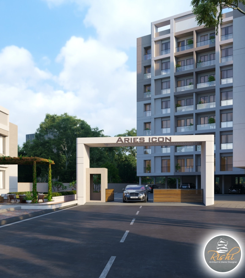 Aries Icon is an ongoing residential project developed by Ohm Buildwick. Located in Vadodara, the project site is specifically situated at Yagnapurush Society, near Wad Garden, on Sunpharma Road in Atladra. The development is focused on providing luxurious apartments, offering configurations of both 2 BHK and 3 BHK. Designed as an apartment complex, the residential units are divided into six apartments, with the ground floor dedicated entirely to parking and the upper floors reserved for residential use.