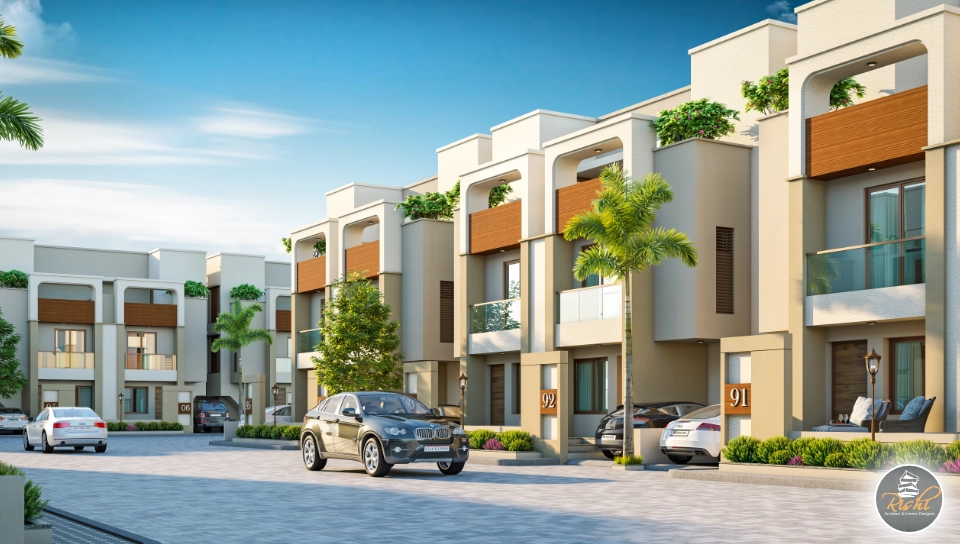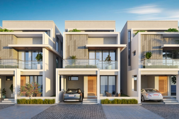 The project includes various villa configurations, such as Type A, A1, and B. For example, a Type A villa has a total built-up area of 1393.0 sq. ft. spread across three floors, featuring a parking area and living/dining space on the ground floor , multiple bedrooms, and a large open terrace on the second floor.