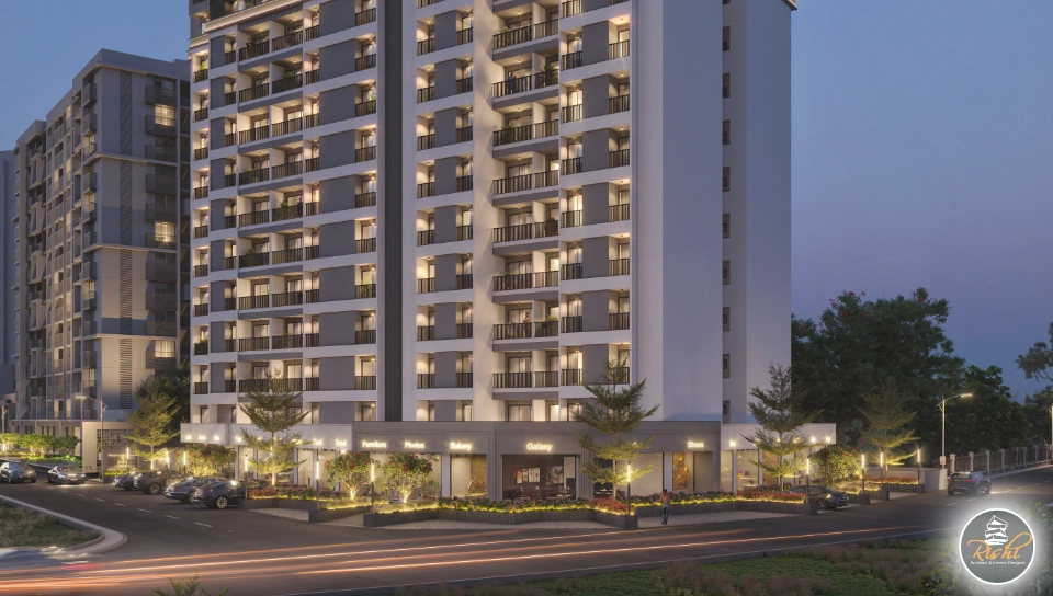 Samruddhi Sunshine is a modern, 13-storey residential and commercial project by Shree Ghanshyam Enterprise offering SHOPS, 2 & 3 BHK LUXURIOUS FLATS. Positioned as a "Sunshine Retreat," the development is located on the 18 mtr Makarpura Village Road in Makarpura, Vadodara, directly opposite the Maruti Kataria Showroom, giving it a Prime Location. The design emphasizes Exquisite Living , prioritizing Precious Ventilation to ensure that every home is bathed in natural light and fresh air, creating an open and rejuvenating living space.